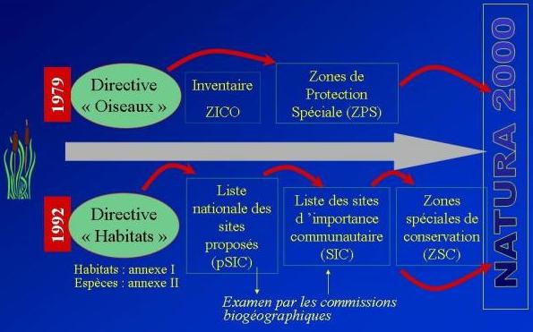 - Les Zones Spéciales de Conservation (ZSC), sont créées en application de la directive « Habitats-Faune-Flore » n° CEE 92/43. Cette directive complète la précédente, pour tout le reste de la faune, la flore, et les habitats naturels.