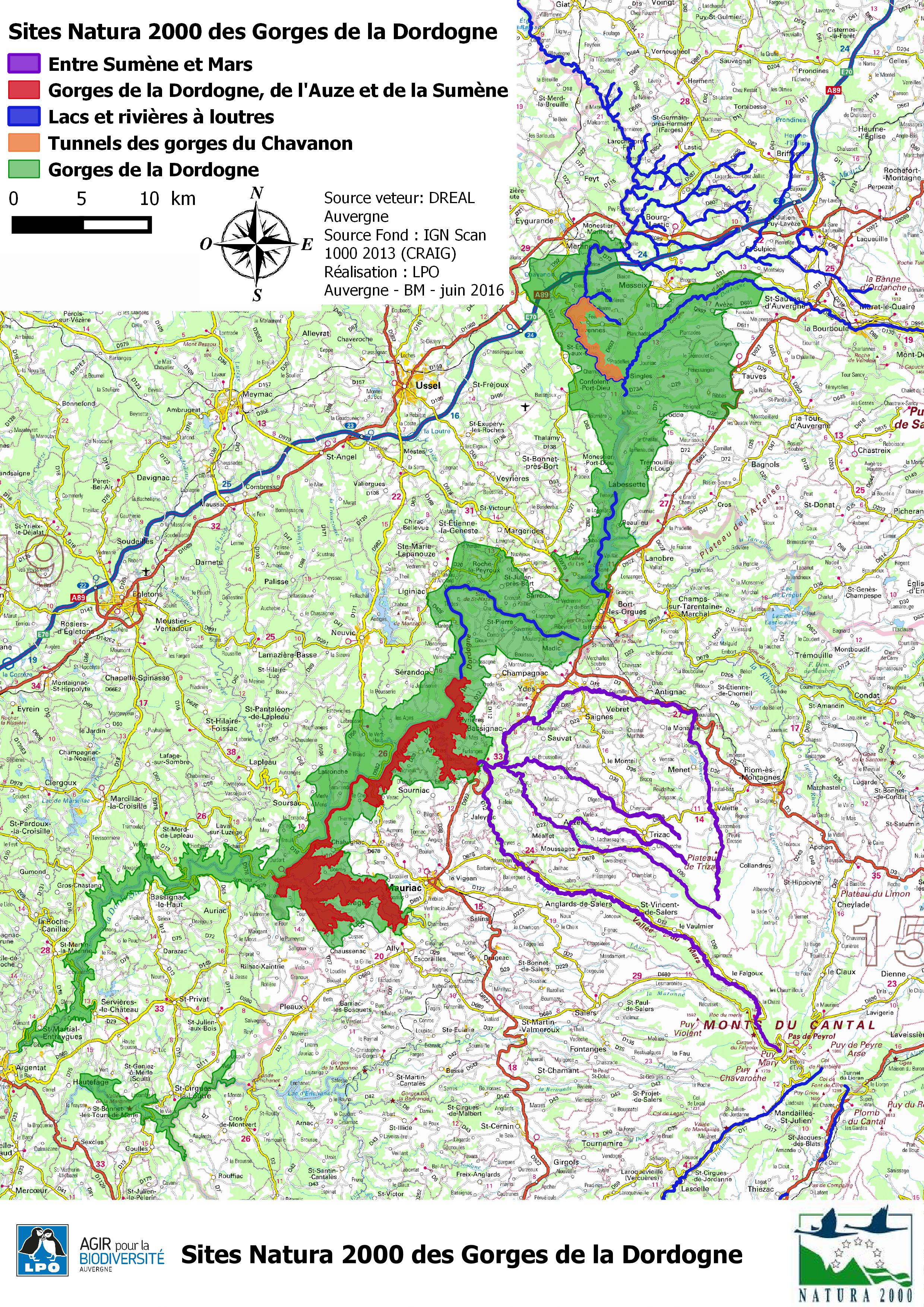 Ce site est plus particulièrement consacré au site Natura 2000 Oiseaux : Gorges de la Dordogne et au site Natura 2000 ZSC :Gorges de la Dordogne, de l'Auze et de la Sumène.